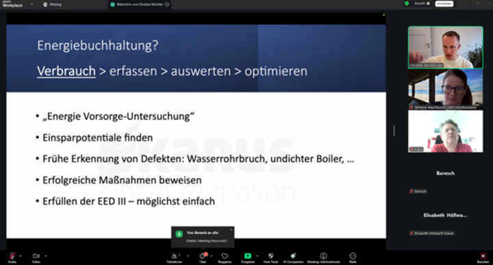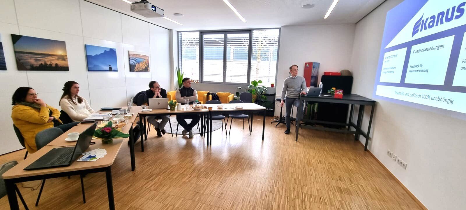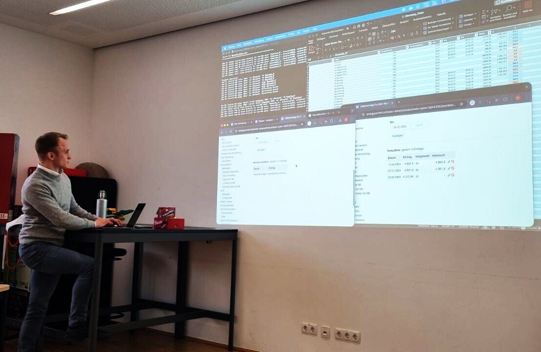 Im Februar und März fanden dazu zwei Schulungstermine statt, bei denen Vertreter:innen aus allen Gemeinden eingeladen waren. Mit Laptop, Zugangsdaten zum Netzportal OÖ, Energieausweisen von Gemeindegebäuden und Informationen zu PV-Anlagen konnten die Teilnehmer:innen das Tool direkt ausprobieren. Unterstützt wurden sie dabei von Christian Stücklberger von ekarus, dem Softwareanbieter, der das Energiemonitoring bereitstellt.