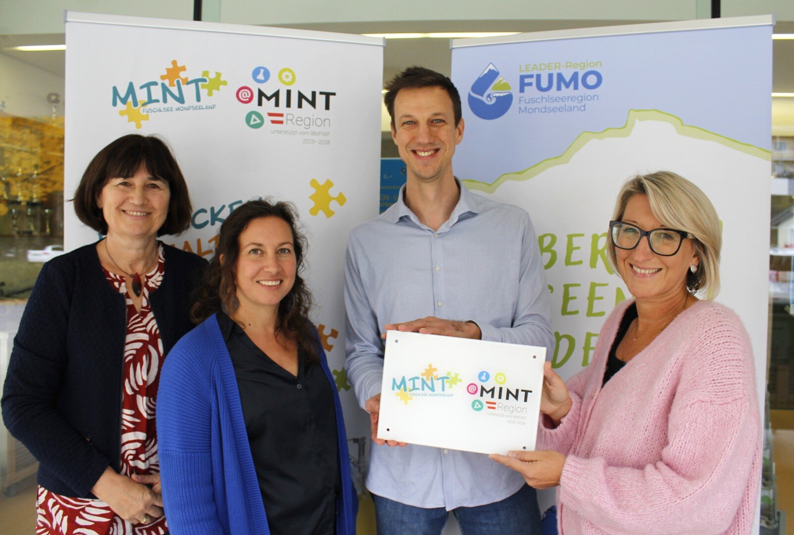 Wir nutzten den Tag auch, um die neuen MINT-Region-Tafeln an einige unserer engagierten Partner:innen zu übergeben – ein sichtbares Zeichen für gelebte Zusammenarbeit in der neuen MINT-Region FUMO.