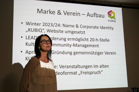Im Vorfeld der Generalversammlung präsentierten Lisa Schmidinger (Kultur- und Communitymanagerin), Bgm. Johann Grubinger und Kristina Sommerauer (Obfrau-Stellvertreterin) das LEADER-Projekt „KUBIQ Thalgau“. Die Ausstellung „Heimat im Herzen – Welt im Blick“ zeigte den Gästen, wie Kunst und Kultur Brücken bauen – zwischen Tradition und Moderne, zwischen lokaler Verwurzelung und globalen Perspektiven. Künstler:innen wie Theresa Andre, Brian McCarthy, Valentin Weinhäupl und Margo Jellar präsentieren hier aktuell Werke, die die Vielfalt der Region widerspiegeln.